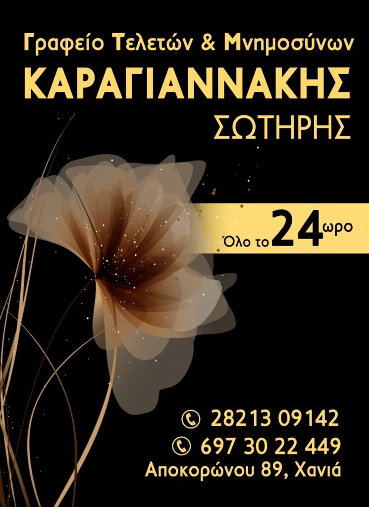 Γραφείο τελετών με σεβασμό και διακριτικότητα, που εξυπηρετεί τα Χανιά και τις γύρω περιοχές, προσφέροντας υποστήριξη σε όλη τη διαδικασία της τελευταίας εξόδου: οργάνωση τελετών, συντονισμός μεταφορών, διευθέτηση μνημοσύνων και ανθοστολισμών, καθώς και βοήθεια σε γραφειοκρατικές διαδικασίες με στόχο να μειωθεί το βάρος για την οικογένεια. Η προσέγγιση είναι ανθρώπινη και επαγγελματική, με προσοχή στη λεπτομέρεια και τη συμμόρφωση στις τοπικές πρακτικές και ανάγκες, ενώ παρέχεται δυνατότητα επικοινωνίας εκτός ωραρίου όταν αυτό απαιτείται. Στόχος είναι να υποστηριχθείτε με διακριτικότητα και φροντίδα σε κάθε στάδιο της διαδικασίας, σε συνεργασία με όποιους φορείς χρειάζονται. Επικοινωνήστε μαζί μας για οποιαδήποτε ανάγκη, με σεβασμό και φροντίδα.