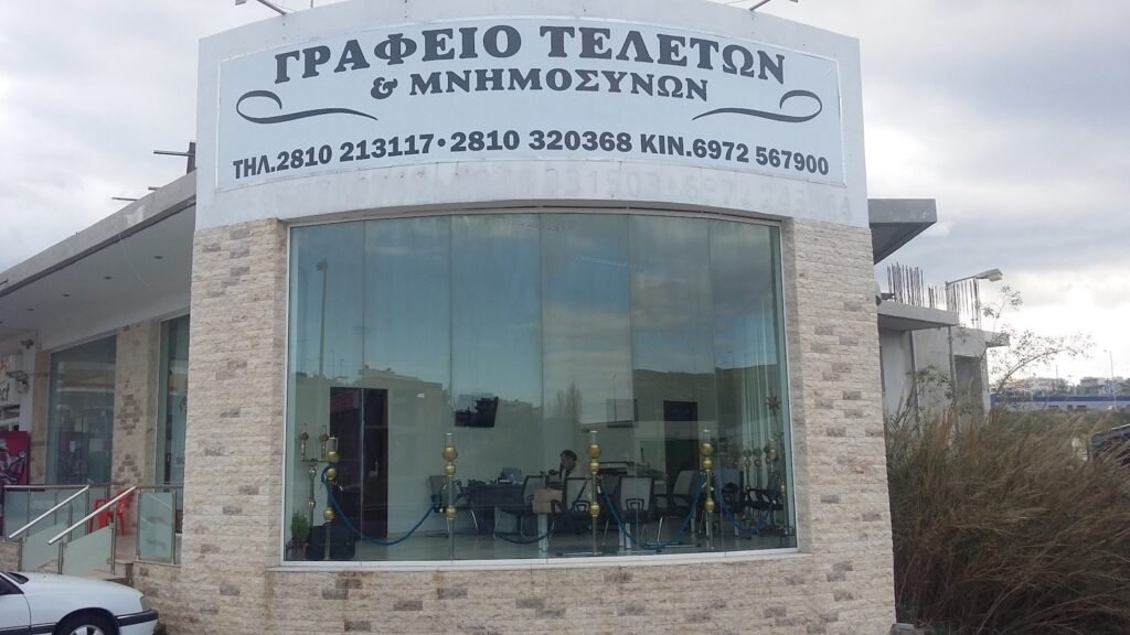 Γραφείο τελετών που προσφέρει διακριτική και επαγγελματική υποστήριξη σε οικογένειες που χρειάζονται οργάνωση κηδειών και σχετικών τελετών. Αναλαμβάνονται ο συντονισμός της τελετής, οι απαραίτητες μεταφορές και η διεκπεραίωση των γραφειοκρατικών διαδικασιών, με στόχο να μειωθεί το βάρος για τους οικείους και να εξασφαλιστεί η ομαλή διεξαγωγή των διαδικασιών. Παρέχονται επίσης υπηρεσίες για μνημόσυνα και συντονισμό ανθοστολισμών σε συνεργασία με τοπικούς προμηθευτές, προσαρμοσμένες στις επιθυμίες και τις θρησκευτικές ή πολιτισμικές ανάγκες κάθε οικογένειας. Εξυπηρετεί την τοπική κοινότητα του Ηρακλείου και τις γύρω περιοχές, παρέχοντας ηρεμία και καθοδήγηση σε δύσκολες στιγμές. Επικοινωνήστε μαζί μας για οποιαδήποτε ανάγκη, με σεβασμό και φροντίδα.